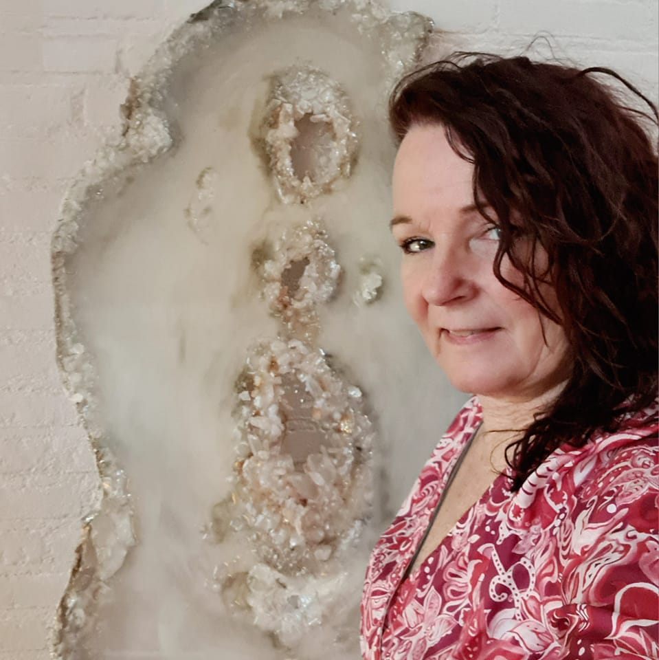 Het werk van Jacqueline is geïnspireerd door de harmonie die ze terug vind in de natuur. Haar kunstwerken worden opgebouwd uit 7 gekleurde hars lagen om een zo getrouw mogelijke diepte te bereiken in haar creaties. Zij werkt enkel met natuurlijke kristallen en edelstenen die in eenheid met de hars als geode worden gevormd en haar kunst tot leven brengt.